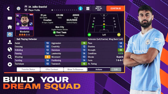 Build a squad to compete in the biggest competitions by scouting the world for top talent, with real global superstars and game-changing wonderkids available in the transfer market for you to sign, like Erling Haaland, Kevin De Bruyne and Jack Grealish.