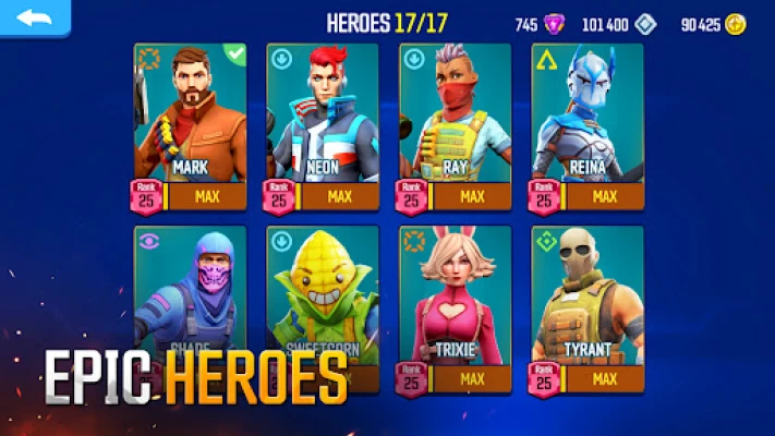 Unlock and level up dozens of heroes, whose unique abilities make each battle unpredictable and exciting!