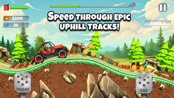 • Collect coins and upgrade your hill climb vehicle for even greater speed and power.