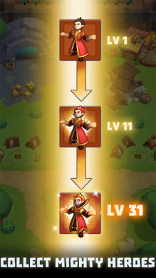 Collect and level up over 60 heroes! Combine their unique skills to perfect your strategy.