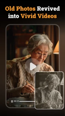 3. Bring Old Photos to Life with AI: With just one click, transform your photos into lifelike videos, bringing back the smiles and vibrant expressions of loved ones, or share a warm hug with them—whether they are near or have passed away. Let precious memories come alive again.