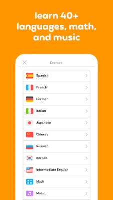 • Every language course is free. Learn Spanish, French, German, Italian, Russian, Portuguese, Turkish, Dutch, Irish, Danish, Swedish, Ukrainian, Esperanto, Polish, Greek, Hungarian, Norwegian, Hebrew, Welsh, Arabic, Latin, Hawaiian, Scottish Gaelic, Vietnamese, Korean, Japanese, English, and even High Valyrian! And now, learn Math and Music with our newest courses!
