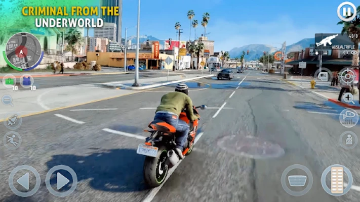 Build your reputation and gain respect in the dangerous underworld of real miami mafia gangster. Explore detailed cityscapes, alleys, and highways in a dynamic open-world setting. In gangster killer bike game, Master the art of crime as you balance missions, exploration, and your rise to power. Dive into nonstop action with endless opportunities to prove yourself in every mission. Challenge yourself with unique gangster missions designed to test your skills and strategy. The city is yours to conquer—drive, shoot, and rule in Grand Mafia City Driving Game!