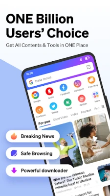 Phoenix browser loads your webpages 2x faster, saves 90% of your data, and enables smooth browsing in a slow network. You can download all-format videos and social media content at a lightning speed.